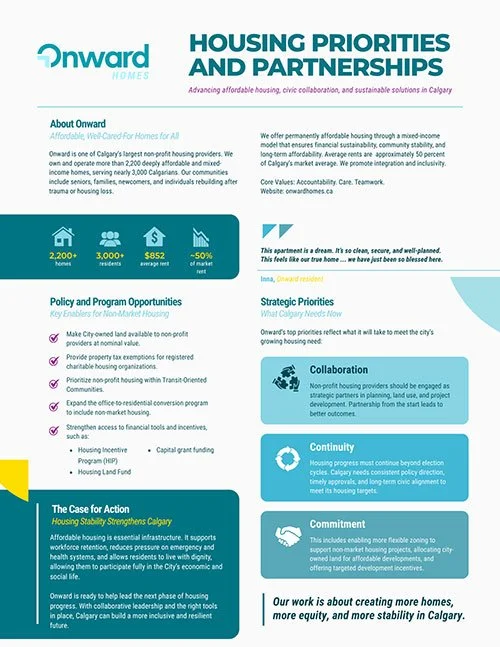 Calgary doesn’t need another reset. It needs momentum. Non-profit housing providers like Onward are already delivering real, lasting solutions. What’s needed now is a City Council that builds on this progress through continuity, collaboration, and committed leadership.